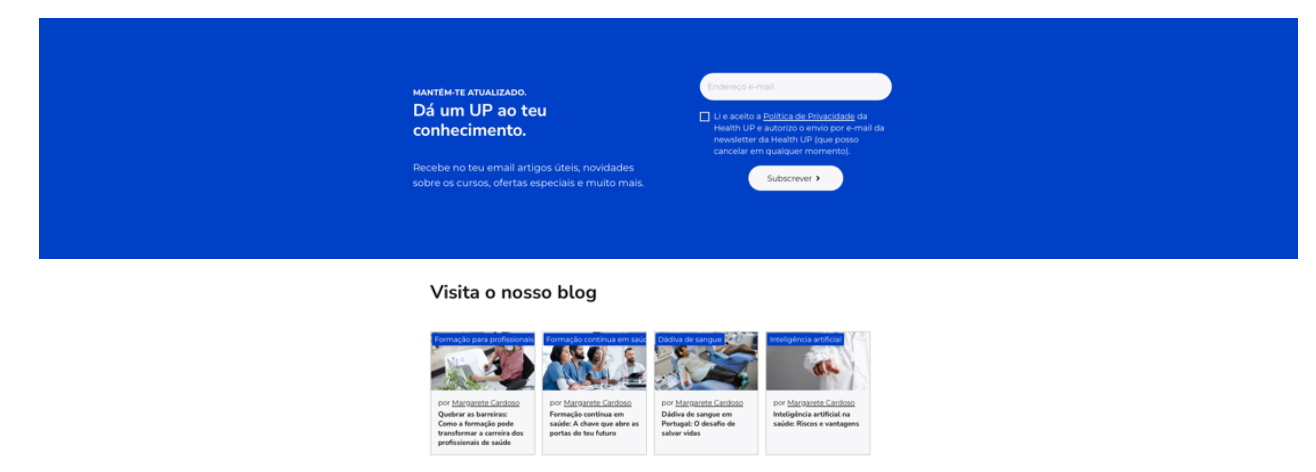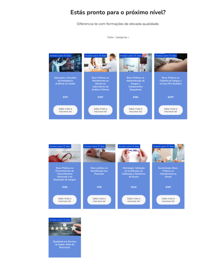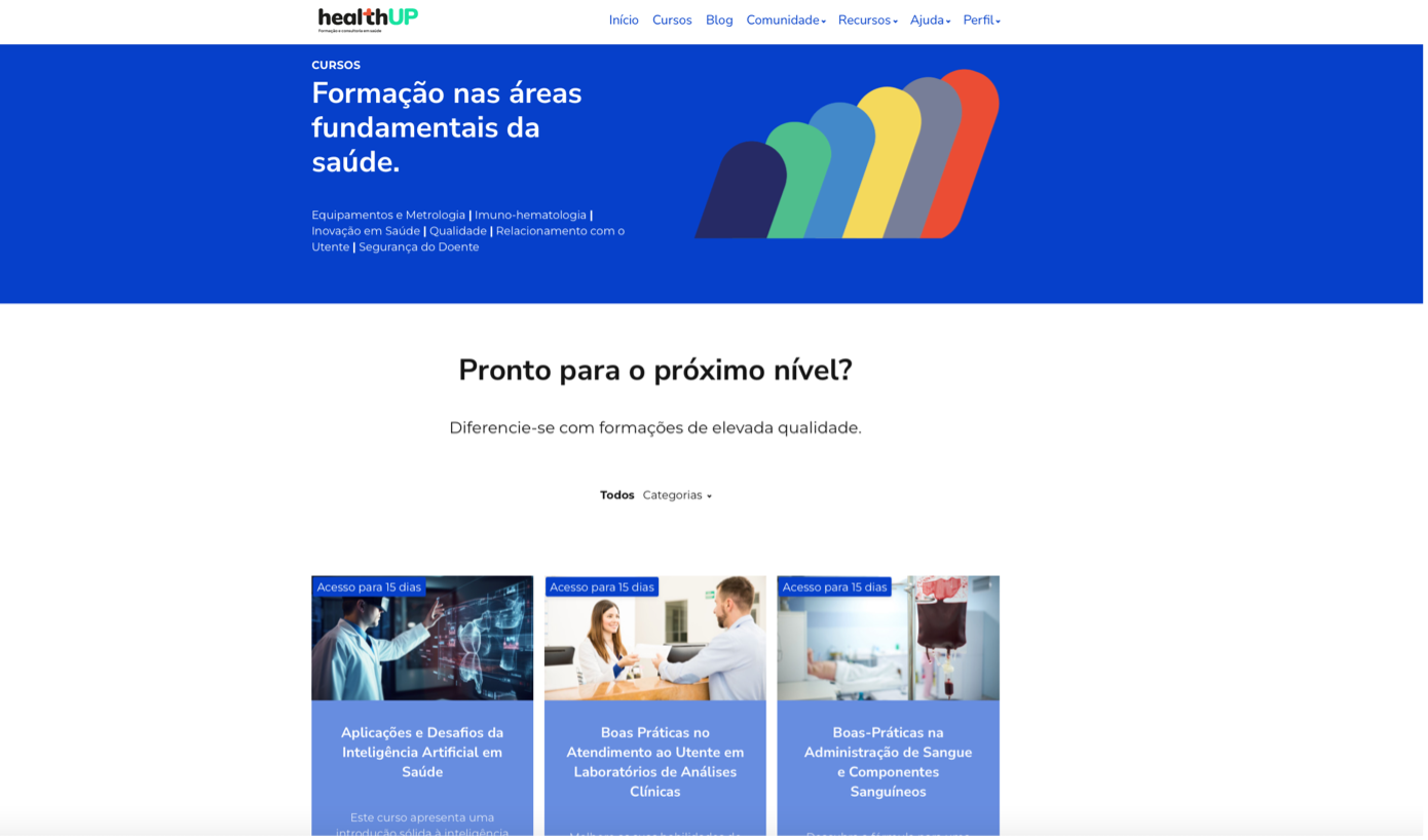 Após a inscrição na Plataforma de Aprendizagem Health UP, podes consultar e escolher o curso que pretendes frequentar.
