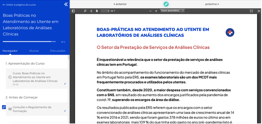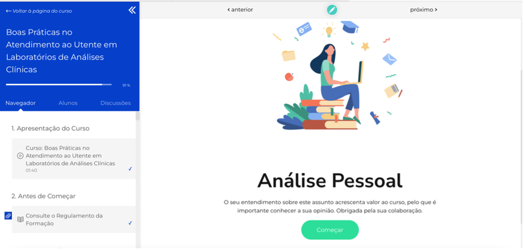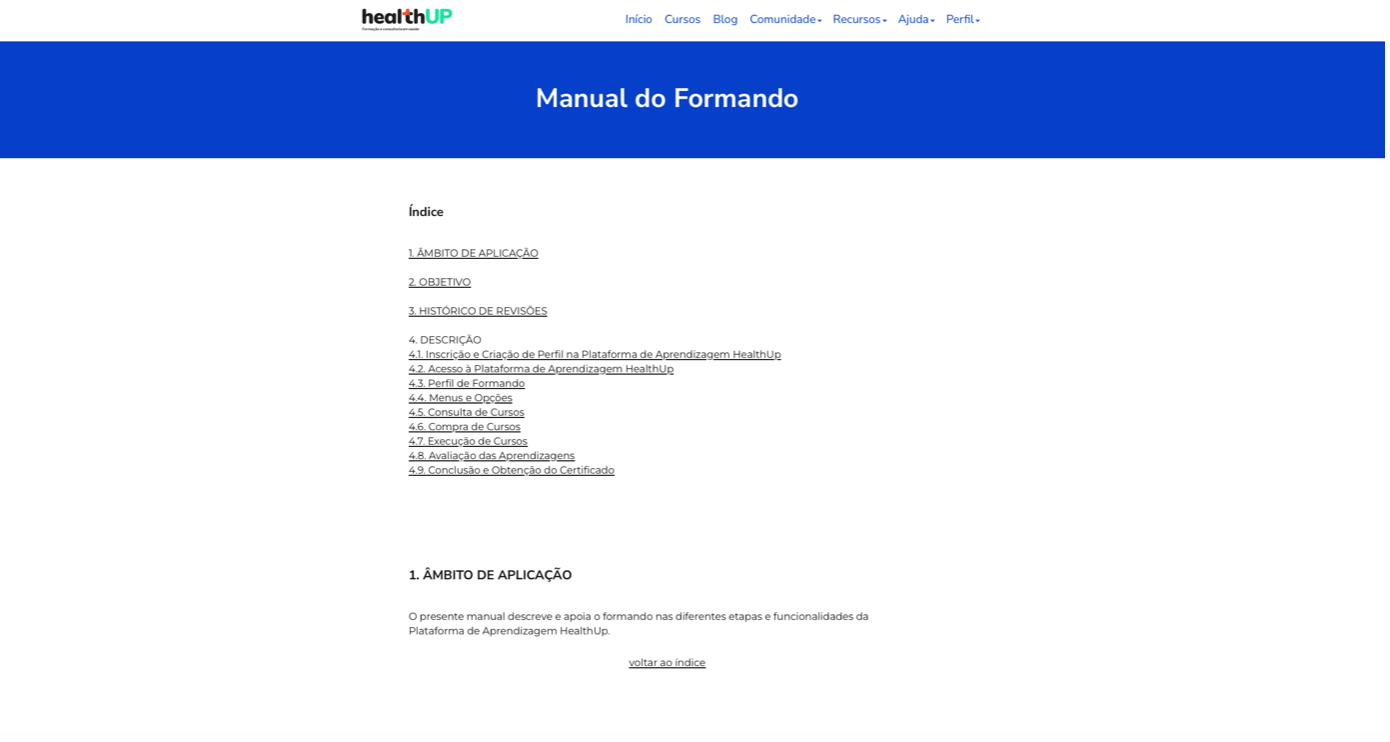 Elucidar-te como navegar na Plataforma de Aprendizagem Health UP.