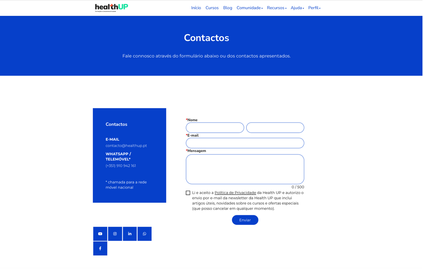 - Fala Connosco – página para envio de mensagens à Health UP (imagem 16);