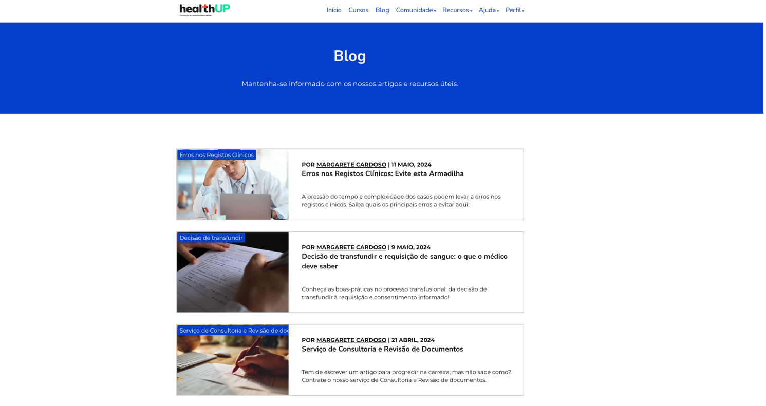 - Blog – acesso ao HealthLog, o blog da Health UP (imagem 7).